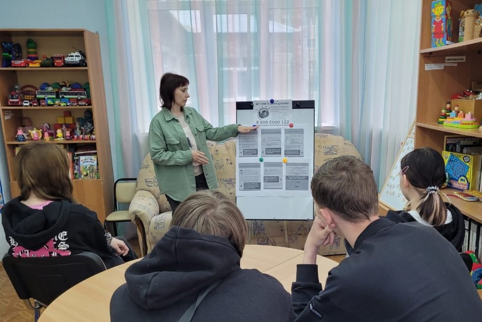 Психолог познакомила подростков с принципами работы службы, разъяснила популярные стереотипы и неверные представления, связанные с телефоном доверия.