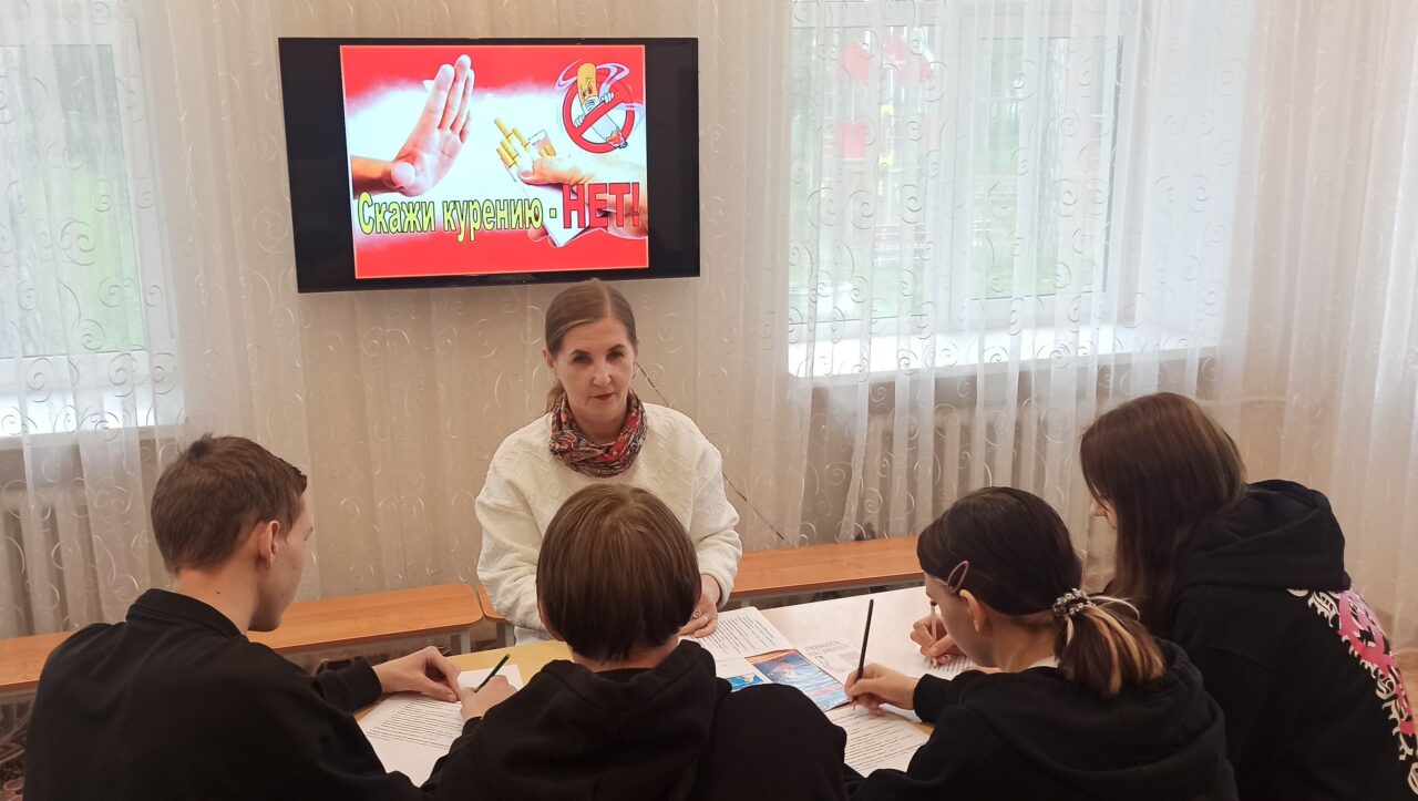 Подросткам было предложено ответить на вопросы анкеты: «Как я отношусь к курению». В ходе дискуссии они активно высказывали свое мнение, отвечали на вопросы, выявляли причины раннего курения, рассуждали о влиянии никотина на организм человека и о том, какие страшные последствия настигают курильщика. Сообща подростки искали ответ на вопрос, как предотвратить и победить уже возникшую пагубную привычку, что можно противопоставить курению. По завершению мероприятия каждому подростку был выдан буклет «Не прокури свое здоровье!».