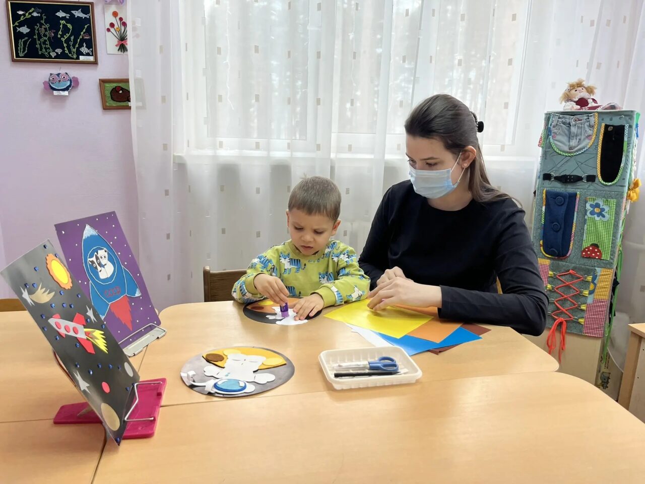 Специалисты МБУ «КЦСОН» проводят мероприятия, доступные для детей, способные вызвать интерес детей к теме космонавтики, знакомят с профессией космонавта: чтение рассказов, рассматривание фотографий, открыток с изображением космоса, сюжетных картинок, проводятся творческие занятия для детей, состоящих на обслуживании в отделении дневного пребывания для несовершеннолетних МБУ «КЦСОН», оформляется выставка детских работ.