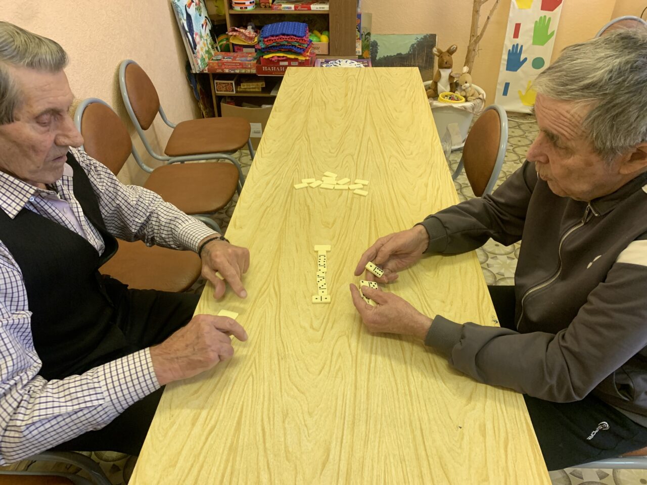 Игра в домино пользуется большим спросом среди наших проживающих. Яркие эмоции, соревновательный эффект, мотивация к победе надолго сохраняют хорошее настроение каждому игроку. «Домино» не просто интересная игра, она приносит пользу здоровья. Помогает тренировать память, умственные способности и мелкую моторику рук. Ну и конечно же, живое общение.