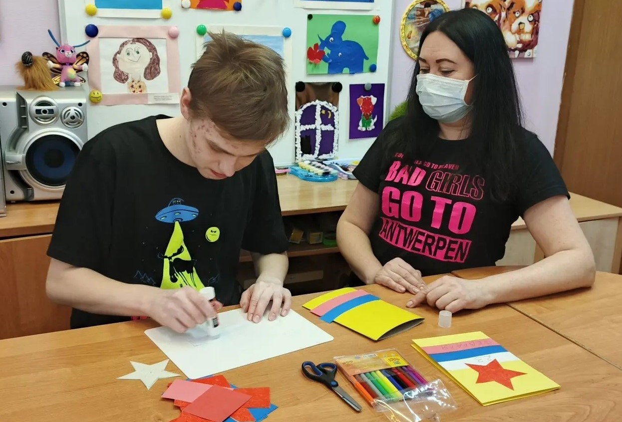 20 февраля 2026 года несовершеннолетние, состоящие на обслуживании МБУ «КЦСОН», в творческой мастерской изготовили поздравительные открытки для пап.